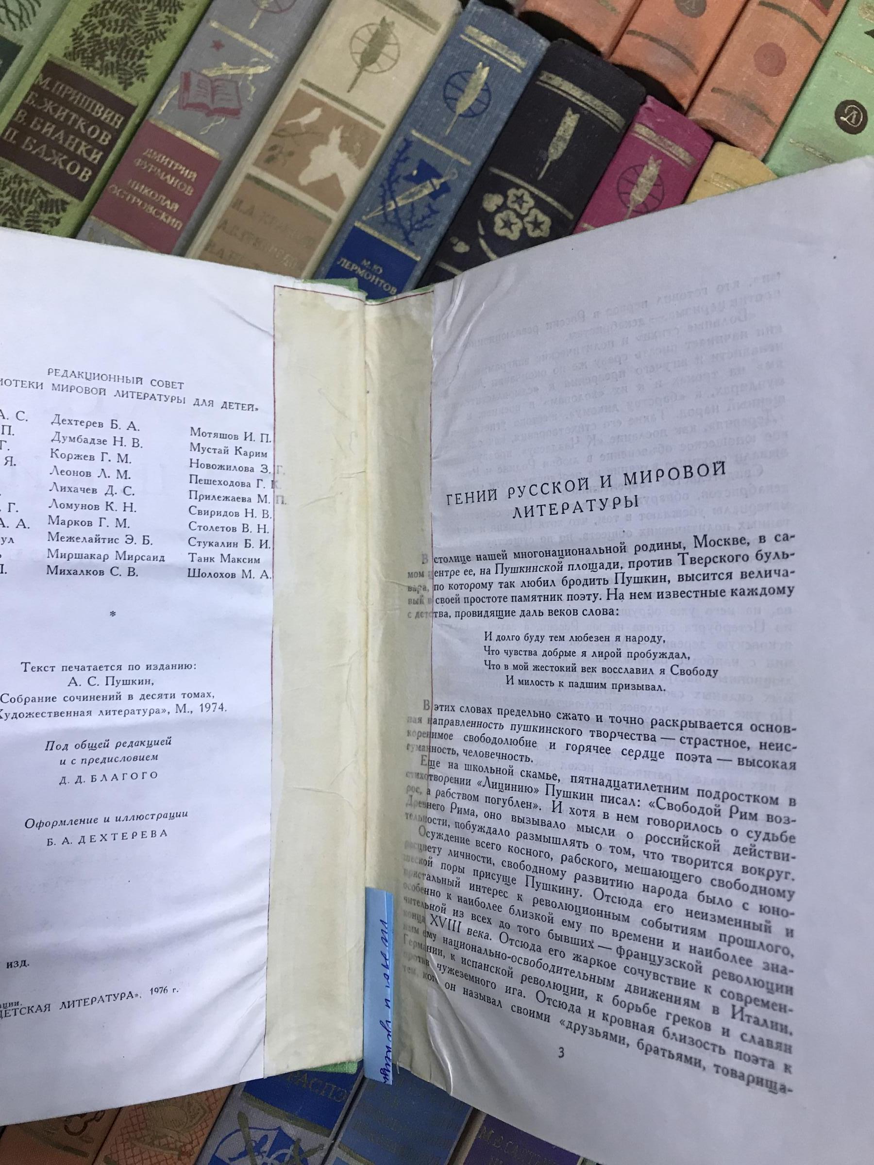 | 9 | BS-Горница Санкт-Петербург. Москва. Детская литература. 1976-1987г. илл.с. Твердый издательский переплет., Немного увеличенный. формат. Состояние: От отличного до очень хорошего у блоков. Некоторые книги не открывались. Очень хорошее-хорошее у переплетов, потемнели или слегка выгорели корешки.немного томов с легким загрязнением. Том 3 - А.С.Пушкин подклеен между 2 и 3 страницами посмотреть – посмотреть – посмотреть – посмотреть – посмотреть |