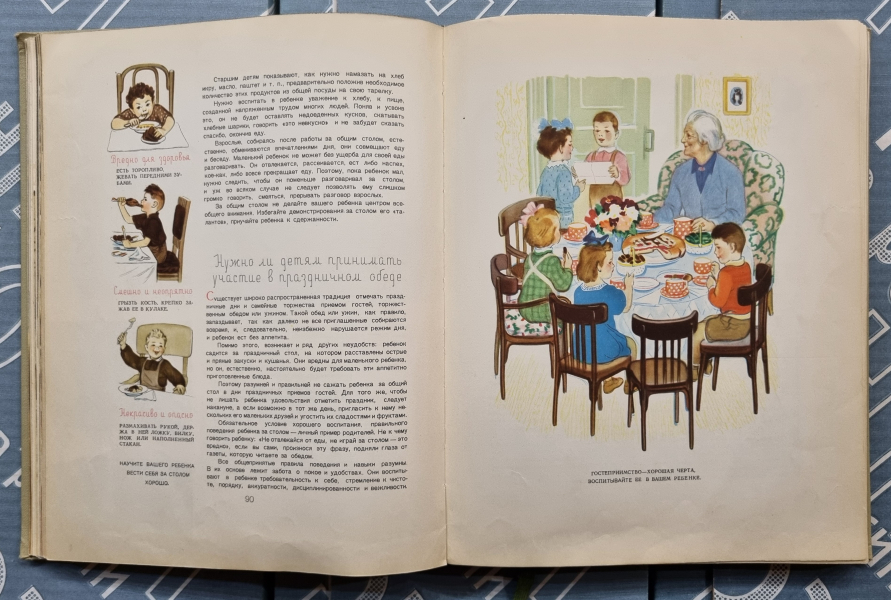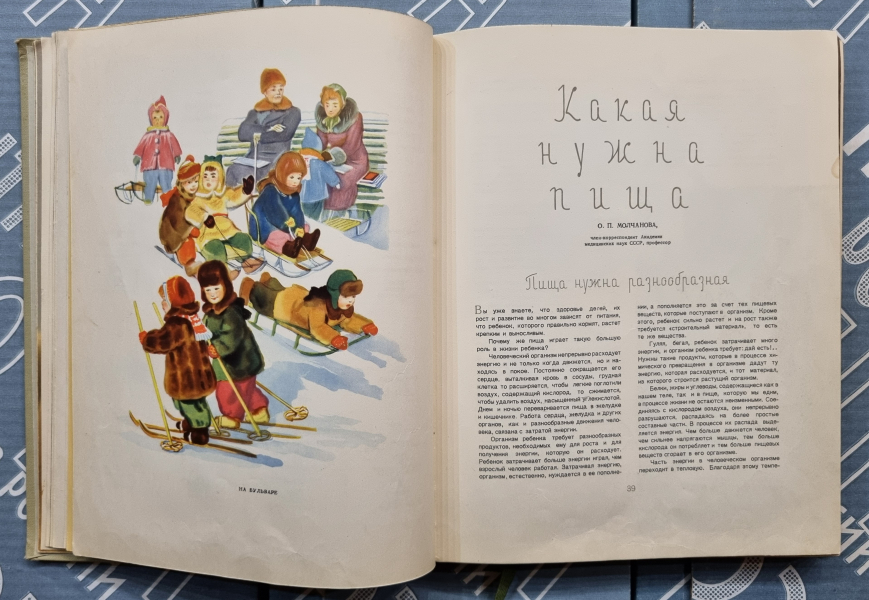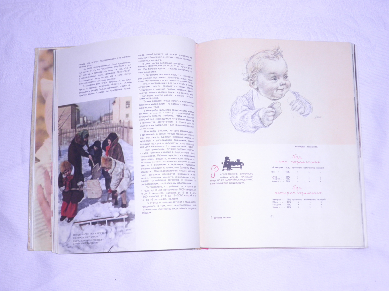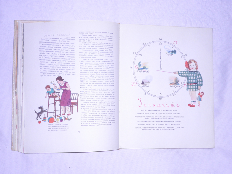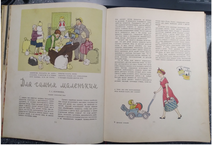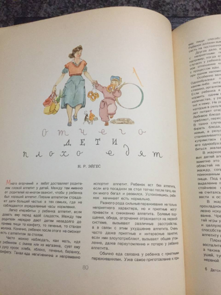 «Детское питание» — это уникальная книга 1964 года, ставшая незаменимым помощником для родителей. Она содержит проверенные временем рекомендации по правильному кормлению детей от рождения до пяти лет, чтобы вырастить их здоровыми и крепкими. Издание богато иллюстрировано работами знаменитых советских художников, таких как А.А. Брей, Г.О. Вальк, Н.А. Ганф и других, что делает его не только полезным, но и визуально привлекательным. Книга предлагает практичные советы и разнообразные рецепты блюд, разработанные при участии ведущих специалистов в области педиатрии и детского питания: В.С. Вайль, В.Ф. Ведрашко, Г.Н. Сперанский, А.Ф. Тур и др. Текст оживляют стихи Н. Кончаловской и С. Михалкова, а исторические заметки подготовлены доктором педагогических наук Н.М. Верзилиным и Н.В. Черкасовым. Это издание — настоящая энциклопедия для заботливых мам и пап. Изданная Госторгиздатом в Москве, книга сочетает научную обоснованность с понятной практической направленностью. Она подробно освещает все аспекты питания: от режима кормления и гигиены приготовления пищи до подбора продуктов по возрасту и решения проблем с аппетитом. Красочные иллюстрации и четкие инструкции делают ее использование простым и удобным в повседневной жизни. СОДЕРЖАНИЕ: Слово о материнстве: Л.А. Дубенская. До одного года: Г.Н. Сперанский. От года до пяти: А.Ф. Тур. Какая нужна пища: О.П. Молчанова. Стакан молока: С.Ф. Кивенко, Н.Е. Раковская. Полезные советы: А.В. Эриванский. Азбука здоровья: Н.Е. Раковская. Новые витаминные препараты. Для самых маленьких: Г.С. Коробкина. Среди зимы наступит лето, когда попробуешь ты это!: Н.Е. Дюбюк. Соблюдайте режим дня: В.Ф. Ведрашко. Гигиена приготовления пищи: Ю.И. Шиллингер. Отчего дети плохо едят: Н.Р. Эйтес. Полезные привычки и навыки: Е.А. Николаева. Нагрудник с карманом. Приятного аппетита!: Лев Кассиль. За маму... за папу!..: Е.А. Таюрина. ПИТАНИЕ РЕБЕНКА ДО ОДНОГО ГОДА. ПИТАНИЕ РЕБЕНКА ОТ ГОДА ДО ПЯТИ: Супы. Петрушка и сельдерей в венках и букетах. Немного истории. Соусы. «Лук от семи недуг». Немного истории. Томат—«перуанское золотое яблоко». Немного истории. Рыба. Мясо. Бутерброды. Варка овощей: Р.Н. Гурина. Салаты, винегреты. Огурец—индийская лиана. Немного истории. Картофель. Букет из цветов картофеля. Немного истории. Морковь, брюква, свекла, репа. Морковь—«лакомство гномов». Немного истории. Капуста. Что можно найти в тарелке щей? Немного истории. Забавные блюда. Тыква, кабачки, баклажаны, помидоры. Тыква—«ловушка обезьян». Немного истории. Блюда из ревеня: Р.Н. Гурина. Шиповник. Цветок спящей красавицы. Немного истории. Творог. Яйца. Крупа, лапша, макароны. Сладкие блюда. Яблоко из Китая. Немного истории. «Ягода с железом». Немного истории. Живительный сок винограда. Немного истории. Тесто. История хлеба. Немного истории. Особые блюда. Витаминные заготовки на зиму. Сколько весит (таблица для определения веса продукта). Вот что должен получать ваш ребенок за день (нормы питания).