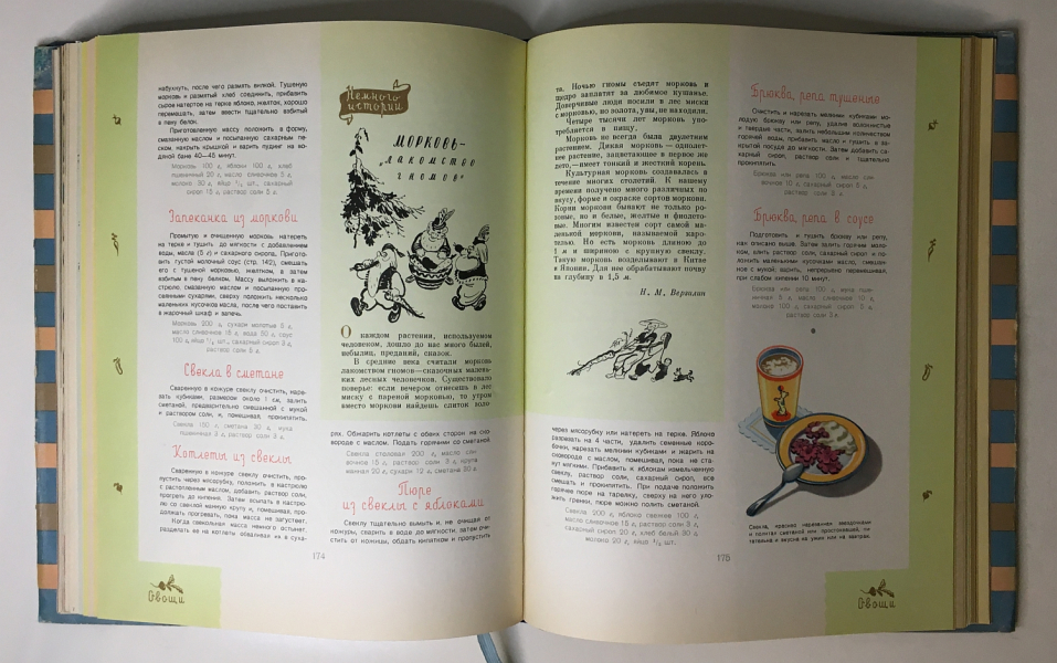 | 104 | BS-Julia83 Москва. М.: Госторгиздат, 1958 г. — 240 с.: ил. Твердый издательский с тиснением золотом комбинированный переплет, энциклопедический формат. Состояние: общее впечатление потрясающее, но есть недочеты при разглядывании под лупой - черкаши простым карандашом на форзацах 1а-1б и нескольких страницах, утрата небольшого франмента с. 105-106, намечающийся раскол блока ближе к концу книги, несколько небольших пятен на страницах в теле книги, при этом страницы в целом чистые и блок крепкий - как новая. Переплет – Разворот |
