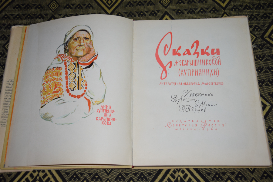 Дети села Большая Верейка, под Воронежем, обожали слушать истории `тетки Анюты`, а позже `бабушки Куприянихи` - так называли Анну Куприяновну Барышникову (1864-1954). И она задорно, с прибаутками, поговорками, рифмованными зачинами и концовками рассказывала ребятам про капризную княжну, смелого Ивана - мужицкого сына, прекрасную Марью-королевну, находчивого солдата, глупого великана… Сказки, которые она слышала от отца и деда и которые сама придумывала в течение своей долгой жизни. А прожила бабушка Куприяниха девяносто лет! Первое красочно оформленное издание сказок Куприянихи появилось лишь в 1961 году. Оформили эту книгу тогда еще молодые, только ищущие свой путь в детской иллюстрации художники - Вениамин Лосин, Евгений Монин, Владимир Перцов и Виктор Чижиков. `Сказки` Куприянихи стали первой книгой, созданной художниками в соавторстве. Настоящая книга повторяет издание 1961 года. Для младшегго возраста.
