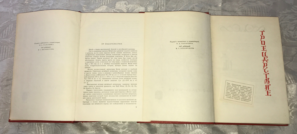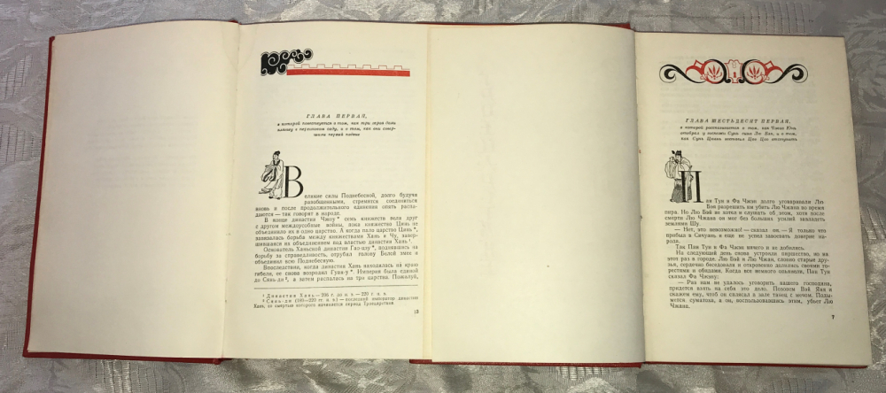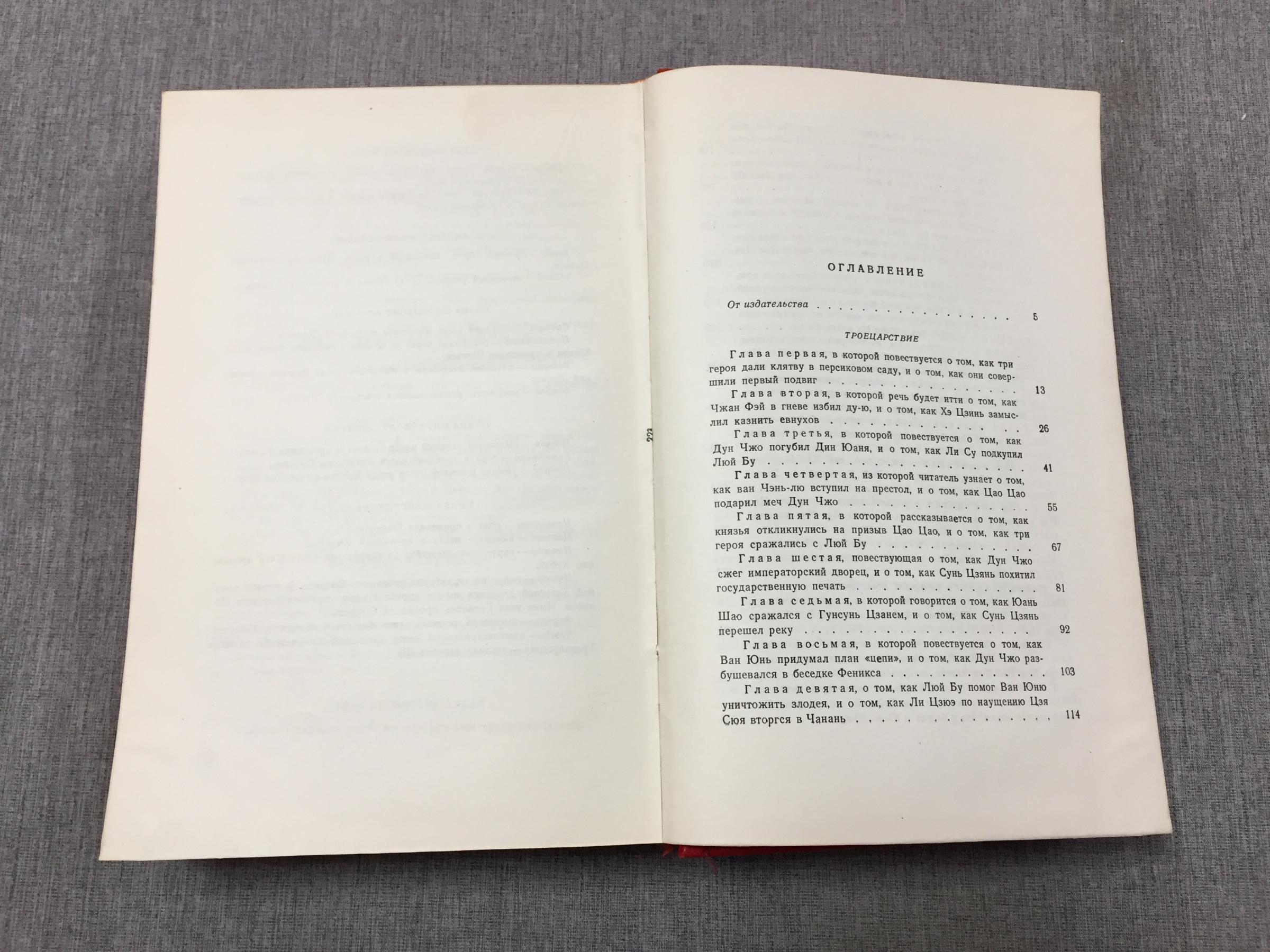 Роман `Троецарствие` относится к так называемым `четырем жемчужинам` китайской классической литературы или `четырем великим романам`, занимая среди них выдающееся место. Китайская пословица гласит, что `надо обязательно успеть прочитать `Троецарствие`, пока ты молод`. В романе изображаются события, относящиеся к III в. н.э., когда Китай распался на три самостоятельных царства: Вэй, Шу, У, непрерывно воевавших между собой. Автор книги - Ло Гуань-Чжун жил приблизительно в 1330 - 1400 гг. Содержание книги `Троецарствие` известно каждому китайцу в любом городе или отдаленной деревне, грамотному или неграмотному. В действительности, историческая канва сочетается в романе с изрядной долей художественного вымысла. Образы персонажей далеко не во всем соответствуют своим прототипам (пример - Цао Цао). Однако невероятная популярность романа на протяжении нескольких столетий привела к тому, что именно они закрепились в народной памяти как четкие стереотипы. Первое издание романа `Троецарствие` относится к 1494 году. Оно вышло в виде 24 тетрадей. В романе 120 глав, около 800 000 слов и почти тысяча драматических персонажей, большинство из которых - исторические лица. Влияние романа в дальневосточном мире (Китай, Япония, Корея, Вьетнам) сопоставимо с ролью Шекспира в английской литературе. Знаменитый роман в добротном, лучшем из существующих, издании. В темно-алом переплете с черно-золотым тиснением, с иллюстрациями китайских художников на отдельных листах. Оформление Николая Ильина, тонированный верхний обрез