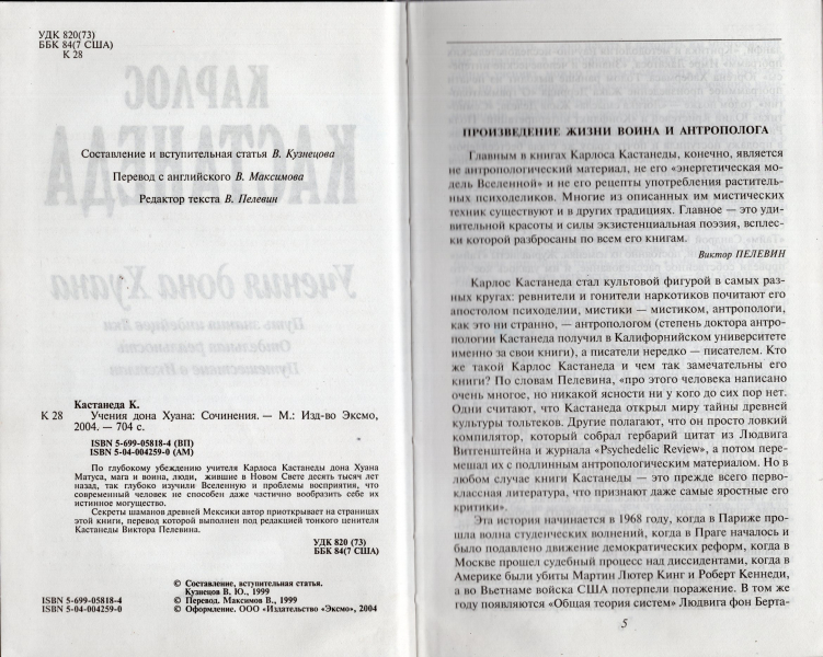 | 17 | BS-buchpostamt2019 Москва. М. Эксмо 2004г. 704 с. Твердый иллюстрированный тиснением серийный издательский переплет, 13*20,5 см. Состояние: хорошее Обложка – Титульный лист – Содержание – Пример разворота 1 – 2 – 3 – 4 – 5 – Виктор Пелевин – Карлос Кастанеда |