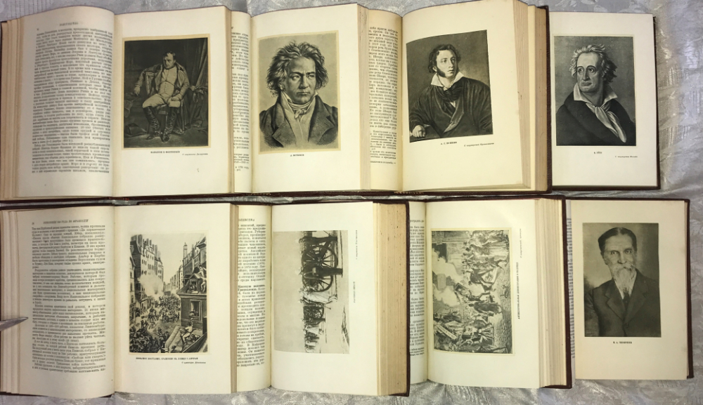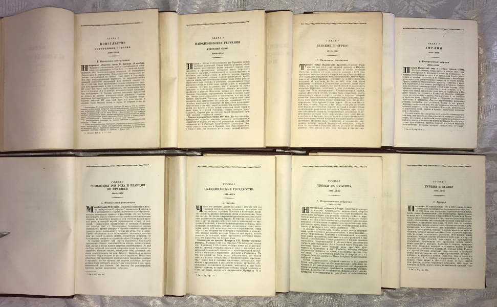 Восьмитомное издание, выпущенное в свет в 1905-1907 годах Товариществом `Бр. А.и И. Гранат`, по мнению историографов, является наиболее полной и последовательно изложенной историей XIX века. Работа, изобилующая историческими фактами и комментариями, написана живым и удобным для чтения языком. В труде широко освещается эпоха буржуазных революций, Наполеоновские войны, реформация в Англии и Франции, колониальная история Латинской Америки и Дальнего Востока, история появления США. При этом авторы повествуют о традициях, нравах и обычаях народов мира. Особое внимание уделяется истории европейской и мировой культуры ХIХ века: музыке, живописи, архитектуре и литературе. Изложение сопровождается многочисленными иллюстрациями, выполненными известными художниками. Также прилагаются факсимиле писем и документов. Эрнест Лависс (Lavisse) (1842–1922) - французский историк, член Французской академии (1892), профессор Сорбонны с 1888 г. Редактор и соавтор многотомных коллективных трудов по всеобщей истории и истории Франции. Известность получила выходившая под совместной редакцией Лависса и Рамбо `Всеобщая история с IV столетия до нашего времени` (т. 1-12, 1893-1901, первые 8 т. вышли в русском переводе в 1897-1903 под тем же названием: последние тома французского издания опубликованы на русском языке под названием `История XIX века`, т. 1-8). Альфред Рамбо (1842-1905) - французский историк, государственный деятель, иностранный член-корреспондент Петербургской АН (1876). С 1881 г. профессор Сорбонны. В 1895-1903 сенатор, в 1896-1898 - министр народного просвещения. Несколько раз направлялся с дипломатической миссией в Россию. Особое внимание уделял политической истории (главным образом Византии, России, Германии) и истории международных отношений. Сторонник сближения Франции с Россией, Рамбо свои основные работы посвятил истории России. Также в создании данного монументального труда по всемирной истории ХIХ века участвовали известные ученые и историки проф. А. Ваддингтон, проф. М. Валь, академик Альберт Вандаль, академик Анри Гуссэ и многие другие, а перевод осуществили известные русские историки: П.Г. Виноградов, М.М. Ковалевский и К.А. Тимирязев. Том 1. Время Наполеона I. 1800-1815. Часть первая. XXII, 321, [2] с., 15 л. ил., факс. Том 2. Время Наполеона I. 1800-1815. Часть вторая. 334, [2] с., 21 л. ил. Том 3. Эпоха реакции. 1815-1847. Часть первая. 342, [2] с., 14 л. ил. Том 4. Эпоха реакции. 1815-1847. Часть вторая. 328, [2] с., 20 л. ил. Том 5. Эпоха революций и национальных войн. 1848-1870. Часть первая. 354, [4] с., 25 л. ил., факс. Том 6. Эпоха революций и национальных войн. 1848-1870. Часть вторая. 339, [2] с., 17 л. ил. Том 7. Конец века. 1870-1900. Часть первая. 350, [2] с., 15 л. ил. Том 8. Конец века. 1870-1900. Часть вторая. 320, [4] с., 16 л. отд. ил.