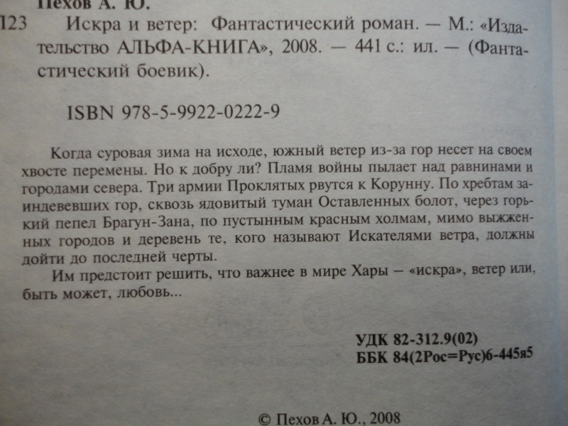 Вся тетралогия «Ветер и искры» в одном томе. Иллюстрация на обложке В.Бондаря Содержание: Алексей Пехов. Искатели ветра (роман), стр. 7-296 Алексей Пехов. Ветер Полыни (роман), стр. 297-550 Алексей Пехов. Жнецы ветра (роман), стр. 551-822 Алексей Пехов. Искра и ветер (роман), стр. 823-1134 Глоссарий, с.1135-1144 Примечания, с.1145-1146 Кирилл Савельев. Из искры возгорится мир: О тетралогии Алексея Пехова «Ветер и искры» (послесловие), с.1146-1150 Мир Хары утратил самое ценное - знание. Все, что тысячелетие назад было обыденным и привычным, теперь кажется сказкой. За жалкие крупицы великого искусства прошлого маги ведут кровопролитные войны. Самая страшная и беспощадная война вот уже пять веков длится между теми, кто правит миром,- Ходящими и Проклятыми. Тьма и свет, некромантия и целительство сплелись в смертельный тугой клубок, уничтожающий всех, кто посмеет к нему прикоснуться. Нэсс и Лаэн бросают вызов носителям Дара, чтобы спасти свою жизнь. Что станет ставкой в их игре - совесть, любовь, деньги, знания, бессмертие?
