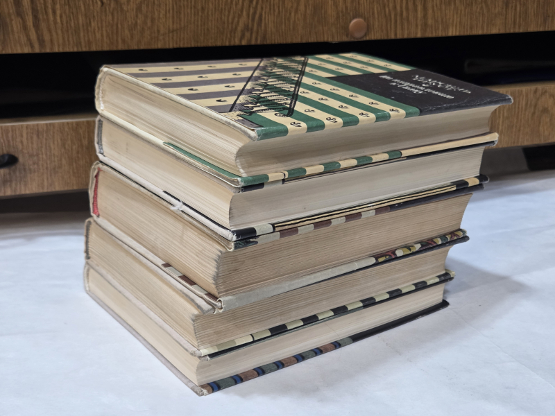 | 9 | BS-andanilov Санкт-Петербург. М. Художественная литература. 1973-1990г. 464, 560, 648, 560, 432 с. Твердый издательский переплет, суперобложка., Формат 20,5х13,5 см. Состояние: Книги - отличное, не читаны, суперобложки имеют мелкие дефекты по краям. 1 – 2 – 3 – 4 – 5 |