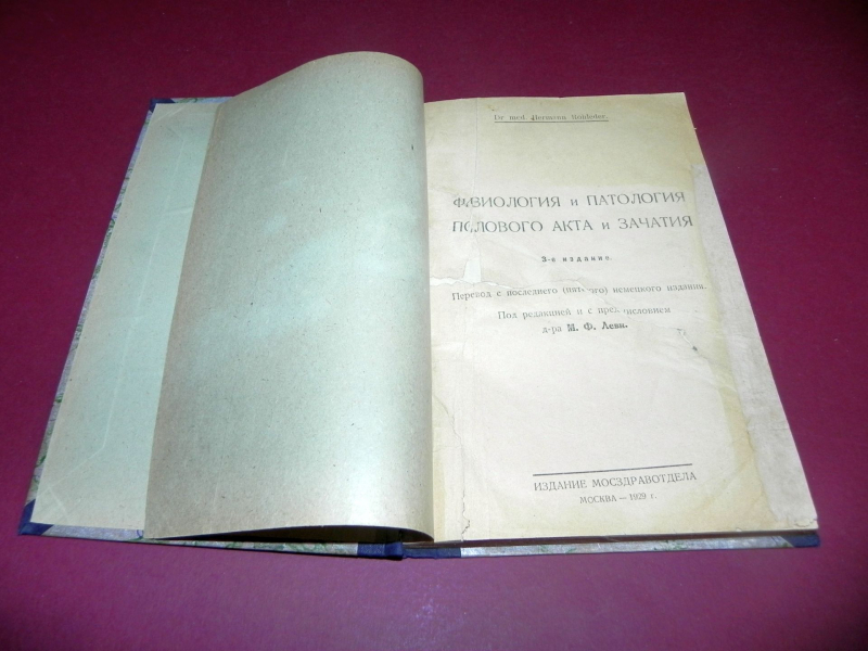 Под переплетом сохранены передняя и задняя издательские литографированные в нескольких цветах обложки. Экземпляр в полной комплектности, без штампов. / / / Научный труд известного германского сексолога доктора Германа Роледера. В книге подробно рассмотрен вопрос о «нормальном и ненормальном совокуплении и зачатии» и патологических заболеваниях, вызванных «половыми излишествами». ОГЛАВЛЕНИЕ. Предисловие. — Нормальный половой акт. — Дефлорация. — Злоупотребления нормальным половым актом и их последствия. — Вагинизм. — Клиторизм. — Прерванное совокупление. — Ненормальный половой акт вследствие патологических изменений. — Оплодотворение. — Патологическое зачатие. — Искусственное оплодотворение у человека.