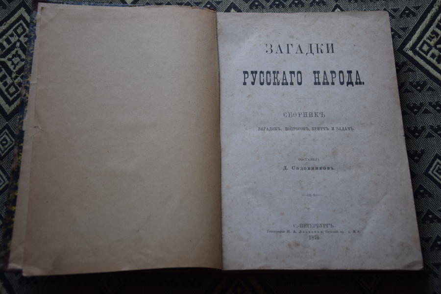 Садовников Д.Н.(1847 - 1883) является одним из самых полных и лучших собраний русского народного фольклора. Издание знакомит читателя со всем многообразием русских народных загадок. По мнению автора именно в загадке, одном из наиболее древних по форме и происхождению видов народного творчества, открывается полный простор для человеческой фантазии, одновременно здесь проявляются вся житейская мудрость и нравственность народа. В загадках, как говорил сам автор, его привлекали `бытовая обстановка и мировоззрение русского земледельца`. Данное, первое издание сборника, содержит свыше двух с половиной тысяч загадок, записанных в двадцати областях России, снабжено статьей и примечаниями составителя. До сих пор этот труд считается классическим сборником русских народных загадок, вопросов, притч и задач, составивший золотой фонд отечественной фольклористики. В 1901г. он вновь вышел небольшим тиражом и с тех пор не переиздавался. Собрание Д.Н. Садовникова обладает тем же значением, что и сборник пословиц В.И.Даля или народные русские сказки в собрании А.Н.Афанасьева. Загадки в сборнике размещены по группам: Жилище, Тепло и свет, Внутреннее убранство, Домашнее хозяйство (утварь и посуда), Пища и питье, Люди и строение их тела, Грамота и книжная мудрость и др. Кроме того в сборник вошли разделы: Вопросы и ответы, Счет и задачи, Дополнения, Алфавитный указатель и Примечания. Дмитрий Николаевич Садовников (1847 - 1883) - русский поэт, переводчик, этнограф и фольклорист, критик. Родился в Симбирске. Составил самый полный и лучший в научном отношении сборник `Загадки русского народа` (1876). В сборнике `Сказки и предания Самарского края` (1884) представил фольклор Поволжья, преимущественно в записи от сказочника А.К. Новопольцева. Ко времени выхода в свет `Загадок` Д. Садовников был известен как литературный критик, считавший самой важной и главной задачей поэзии - `передать современную народную жизнь во всей ее реальной правде.