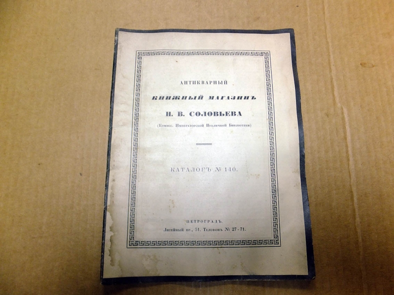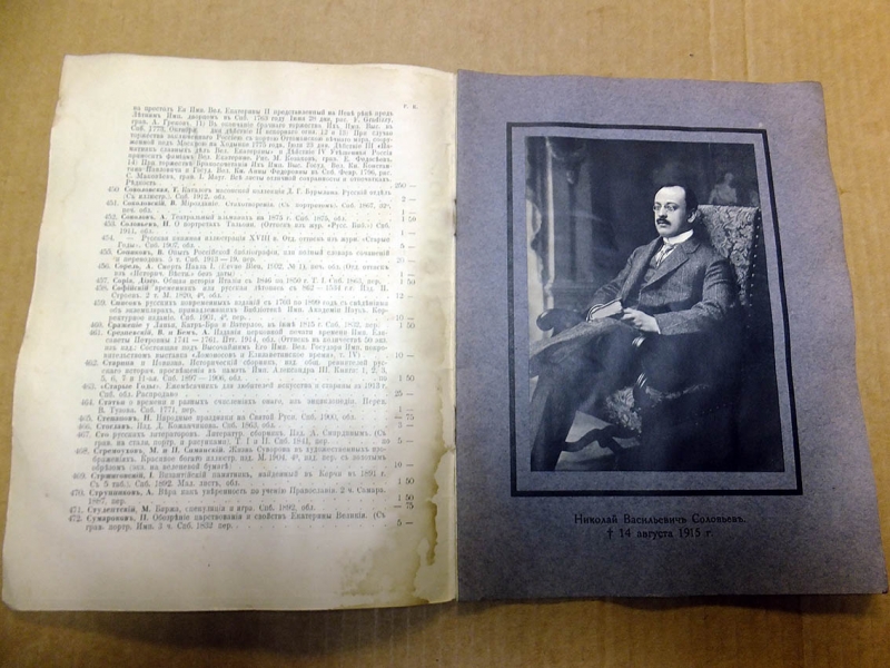 | 28 | BS-Antikes Санкт-Петербург. Петроград. Сириус. 1915г. 18 с., портр., с некрологом на Н.В. Соловьева. Издательская обложка в черной рамке., Обычный формат. Состояние: Хорошее, следы влаги. 1 – 2 – 3 |