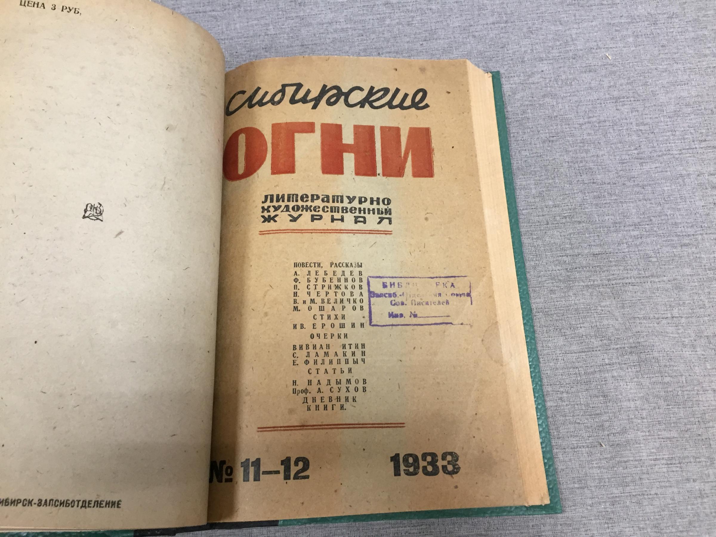 | 77 | BS-belfast Москва. Новосибирск Орган комитета Западно-сибирского отдела Союза Советских писателей 1932г. 128 с. Мягкий переплет, почти энциклопедический формат. Состояние: Журнал из известного издательства. На 17 стр. и обложке штамп издательства. Корешок подбит и с микроутратами. Иных маргиналий нет. В остальном состояние вполне хорошее. Частично даже не разрезанный экземпляр.. обложка – титул |