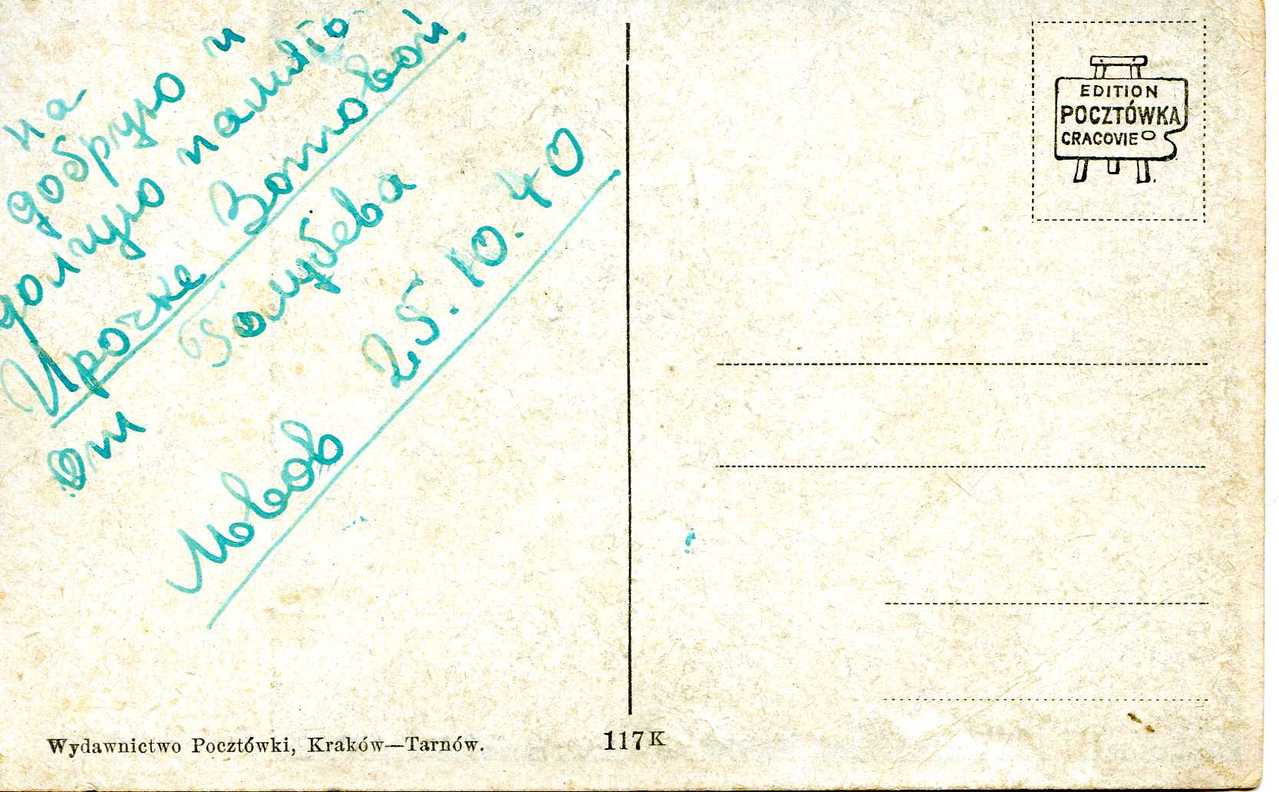 | 34 | BS-OldSeaman Подмосковье. Краков.Тарнов. Почта Кракова. До 1940г. Состояние: Хорошее. Небольшой надлом левого нижнего угла. Надписана. картинка – оборотка |