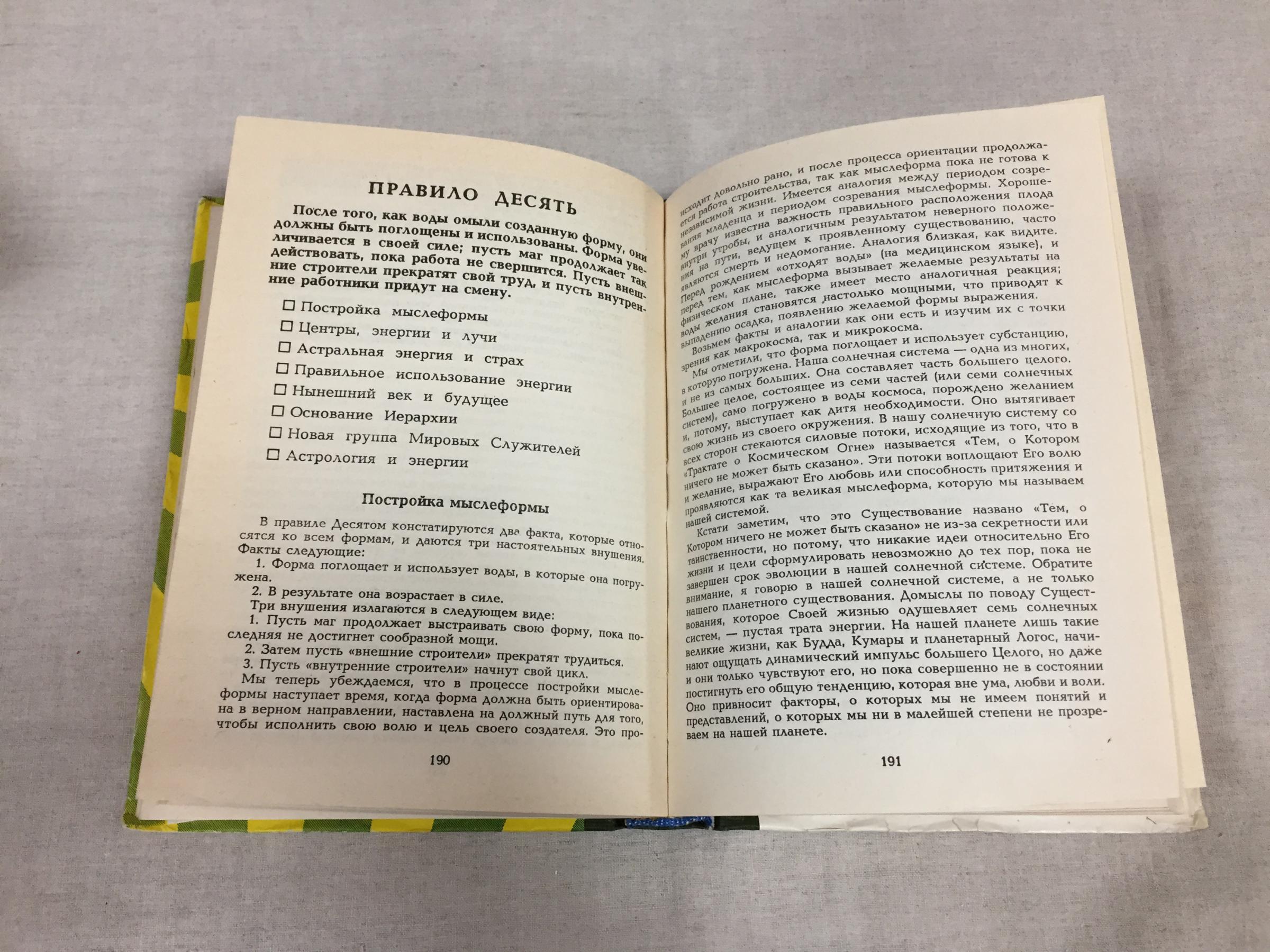Настоящая книга последовательно продолжает уже посланные в мир учения. Автор представляет Истину таким образом, что полученная информация поднимает вдохновение и волю к служению с плана эмоционального на план ума (план, на котором Учителя могут быть обретены). В книге тибетский учитель Джуал Кхул раскрывает секреты Вневременной Мудрости. Духовная Иерархия Планеты дает человечеству руководство в духовной жизни в Новом Веке. Белая Магия - это магия души. Закон привлечения и отталкивания привлечет к вам свежие силы и охранит вас на пути самосовершенствования от воздействия темных сторон мироздания. В книге описаны Пятнадцать правил Магии (для установления контроля Души) - Душа, белый маг, проявляется благодаря присущим ей `магическим` способностям. Человеческое существо по сути своей божественно. Душа представляет собой средство развития в человеке сознания божественности, искупления грубой материи и освобождения чистого пламени Духа от ограничения формы. `В данной книге мы сосредоточим внимание на жизненном аспекте и практическом приложении истины к повседневной жизни стремящегося. Давайте учиться, как стать практическими магами и как наилучшим образом жить жизнью духовного человека и жизнью стремящегося к принятию в ученики в наше особое время, в нашем положении и окружающей обстановке. Тираж - 5000 экз.