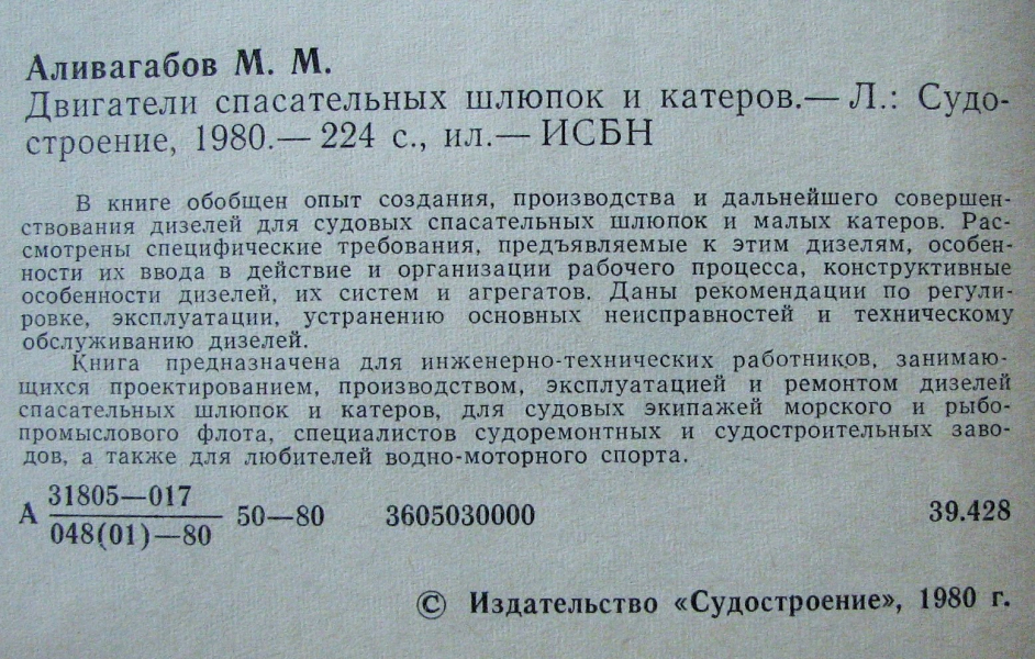 Аливагабов М.М. Двигатели спасательных шлюпок и катеров.