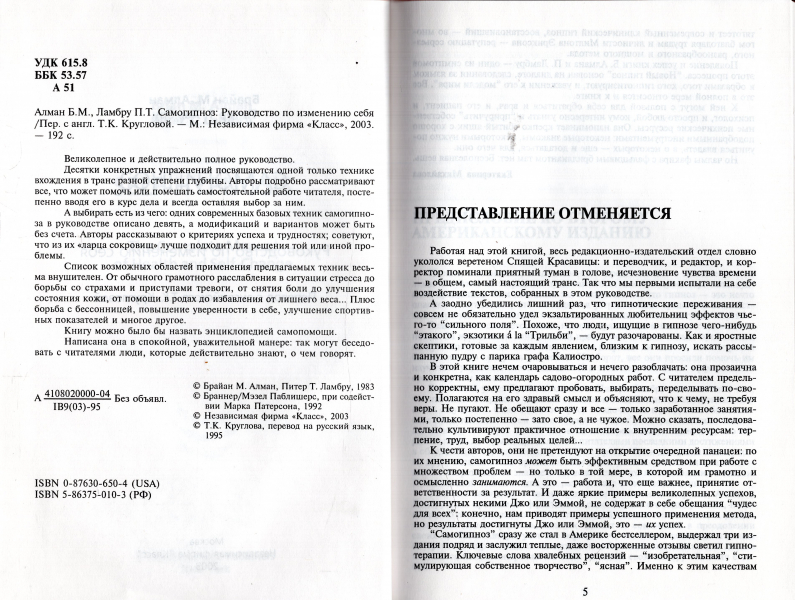 Алман Брайан М., Ламбру Питер Т. Самогипноз.