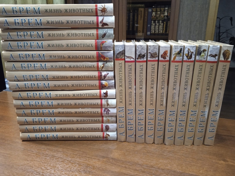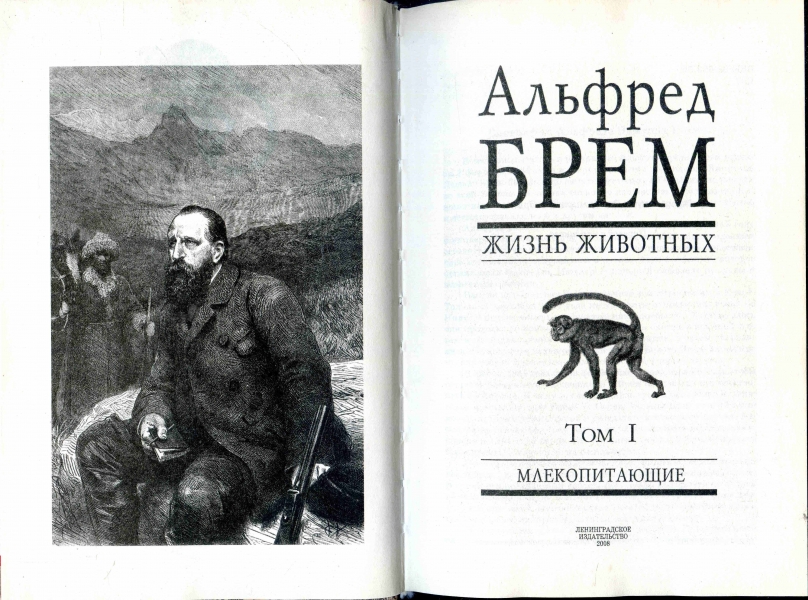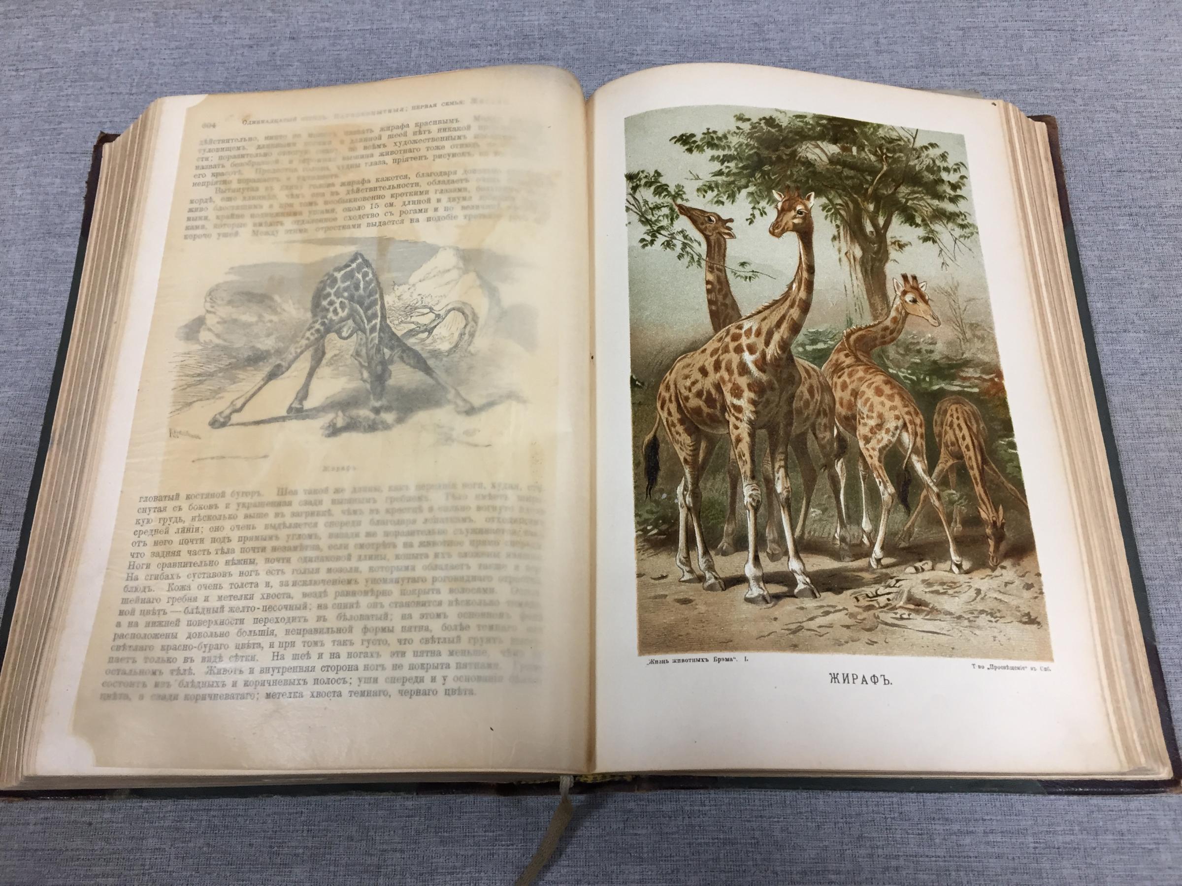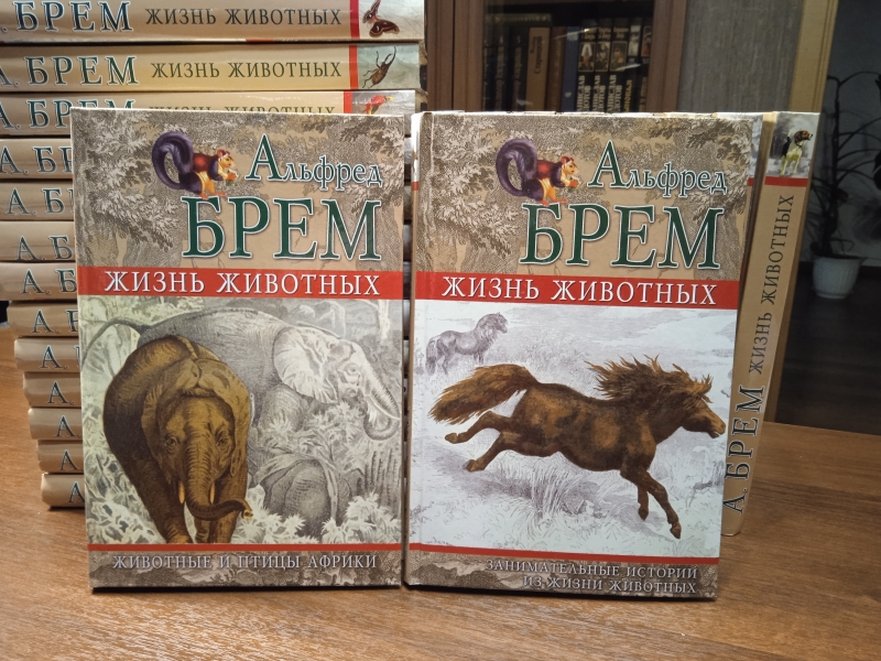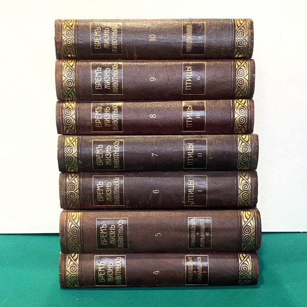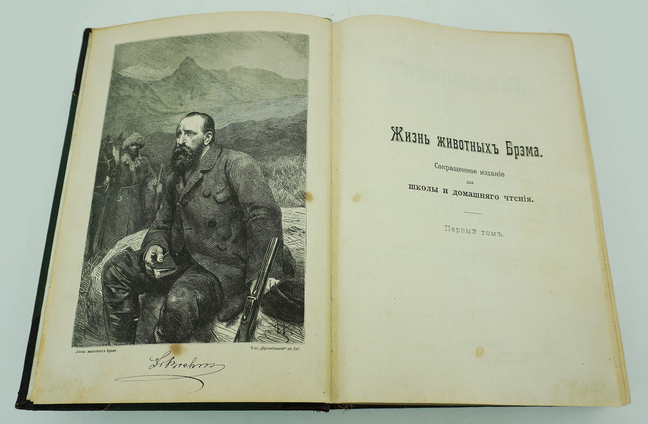 Популярный труд известного зоолога. Иллюстрированное издание. Альфред Эдмунд Брем (Брэм, 1829 – 1884) – немецкий ученый-зоолог и путешественник, автор знаменитой научно-популярной работы «Жизнь животных». А.Э. Брем родился во времена, когда на открытых путешественниками землях обнаружили невиданно интересный мир птиц, рыб и зверей. Обстоятельно, с научной достоверностью, простым языком он описал все существующие на земле живые организмы. С раннего возраста под руководством отца-орнитолога принимал участие в естественнонаучных и особенно зоологических наблюдениях и работах. Путешествия А.Э. Брэма начались в 17-летнем возрасте с путешествия по Африке в верховья Нила. После пятилетних странствований он вернулся в Германию и изучал в Йене и Вене естественные науки. Печатал орнитологические очерки в журналах и был одним из основателей Немецкого орнитологического общества. Второе путешествие привело его в Испанию, третье в Норвегию и Лапландию и в 1862 году четвертое — в северную Абиссинию. В 1863 году он принял приглашение стать директором Зоологического сада в Гамбурге, а в 1867 году переселился в Берлин, где в 1869 году основал знаменитый Берлинский аквариум. А.Э. Брем создал ряд превосходных научно-популярных работ, отличающихся основательностью содержания и живым, увлекательным изложением. Книги из собрания «Жизнь животных» содержат тонкие и живые наблюдения над миром животных, и современны до сих пор. Они не потеряли своей ценности не только как фундаментальный научный труд, но и как увлекательное и познавательное чтение для всех возрастов и поколений. Труд А.Э. Брема «Жизнь животных» уже более ста лет служит основой для школьных учебников, справочников. Здесь предлагается перевод с 3-го немецкого исправленного и дополненного издания, под редакцией магистра зоологии К.К. Сент-Илера. В каждом томе – подробное оглавление разделов и рисунков в начале издания, алфавитный указатель в конце издания на русском и латинском языках, а также множество политипажей и хромолитографий. Т. 1: Млекопитающие. Обезьяны. Полуобезьяны. Рукокрылые. Часть хищных. 1893. VIII, [4], XII, 724 с. : [19] л. частью цв. ил., портр., карт. Т. 2: Млекопитающие. Окончание хищных. Ластоногие. Насекомоядные. Грызуны. Неполнозубые. 1893. VIII, 730 с. : [19] л. частью цв. ил. Т. 3: Млекопитающие. Хоботные. Непарнокопытные. Парнокопытные. Сирены. Китообразные. Сумчатые. Птицезвери. 1893. VIII, 795 с. : [25] л. частью цв. ил., карт. Т. 4: Птицы. Воробьиные. Дятловые. Колибри. Стрижи. Мышанки. 1893. [2], II, VIII, 793 с. : [19] л. частью цв. ил. Т. 5: Птицы. Курукуйки. Пилоносы. Удодовые. Зимородки. Кукушковые. Совиные. Козодои. Сиворакши. Попугаи. Голубиные. Куриные. Водяные курочки. Журавлиные. 1894. X, 741 с. : [18] л. частью цв. ил. Т. 6: Птицы. Поисковые. Ластокрылые. Буревестниковые. Боевые. Шпорцекрылые. Нанду. Казуаровые. Страусовые. 1894. [2], VIII, 836, [1] с. : [23] л. частью цв. ил., карт. Т. 7: Пресмыкающиеся : Земноводные. 1895. [2], VIII, 834 с. : [17] л. час