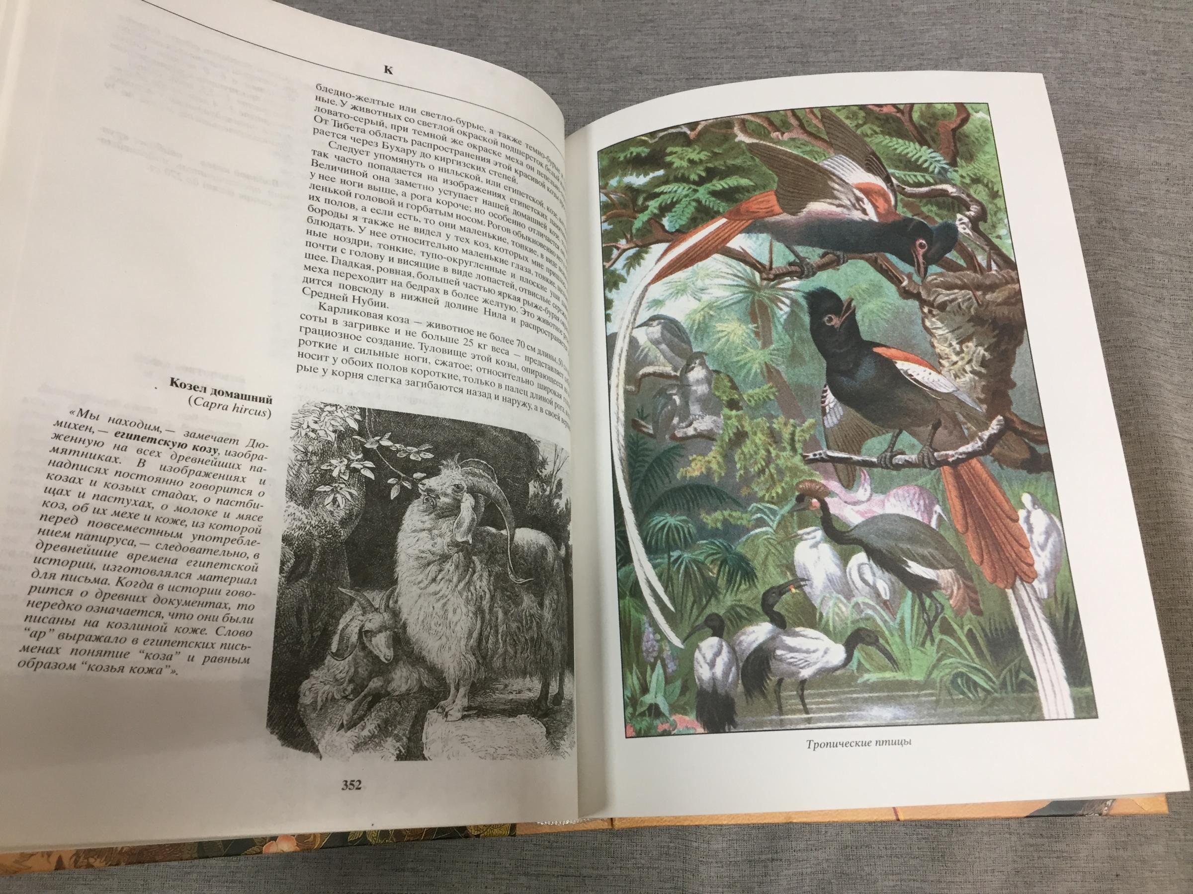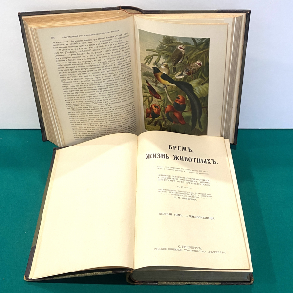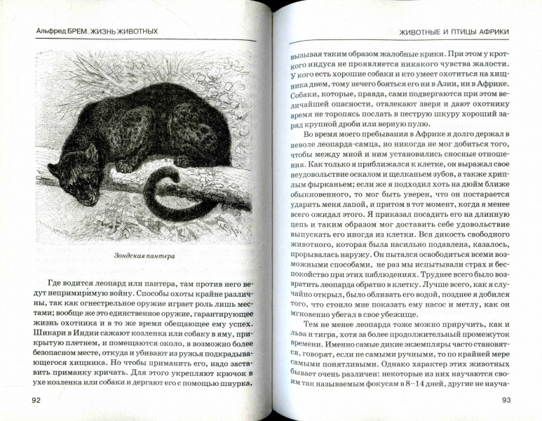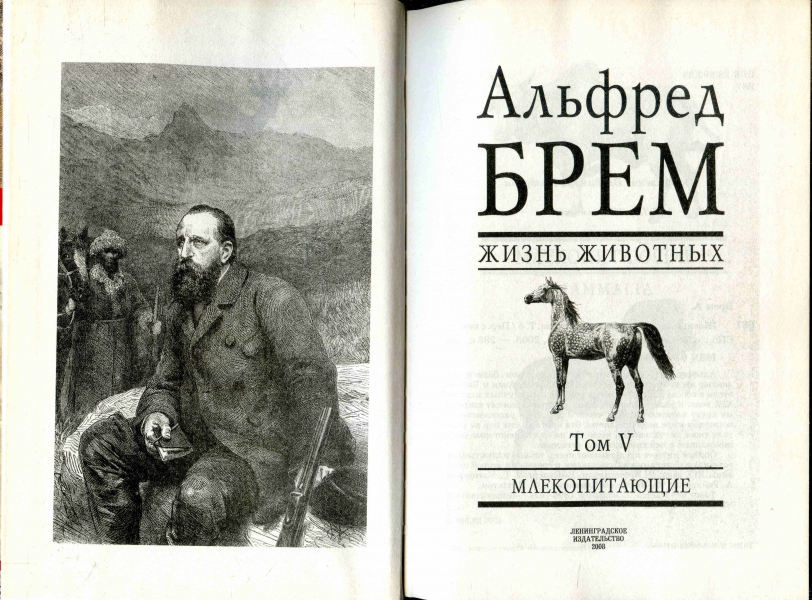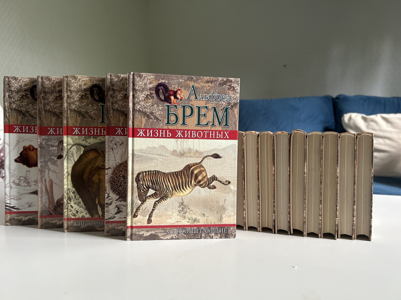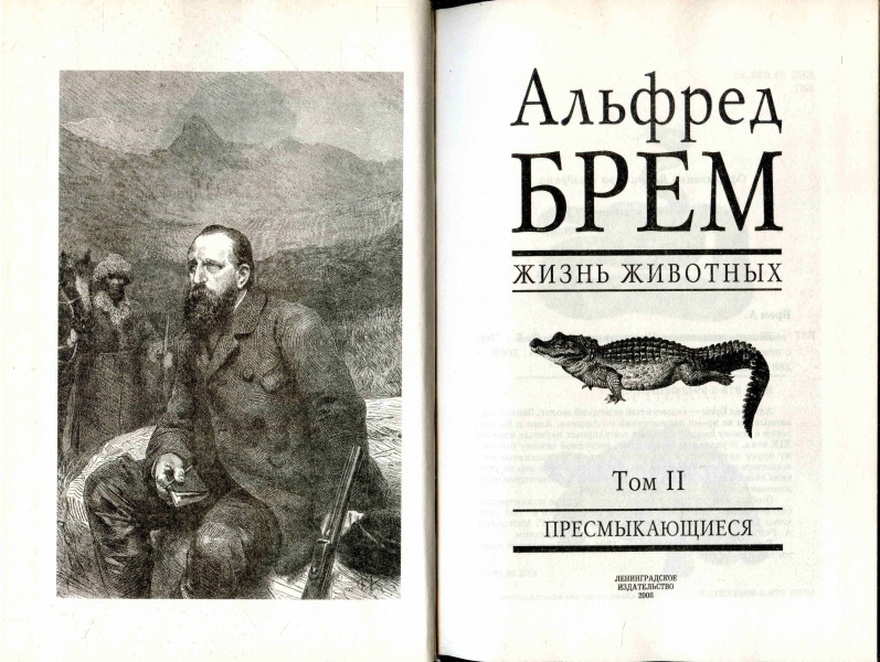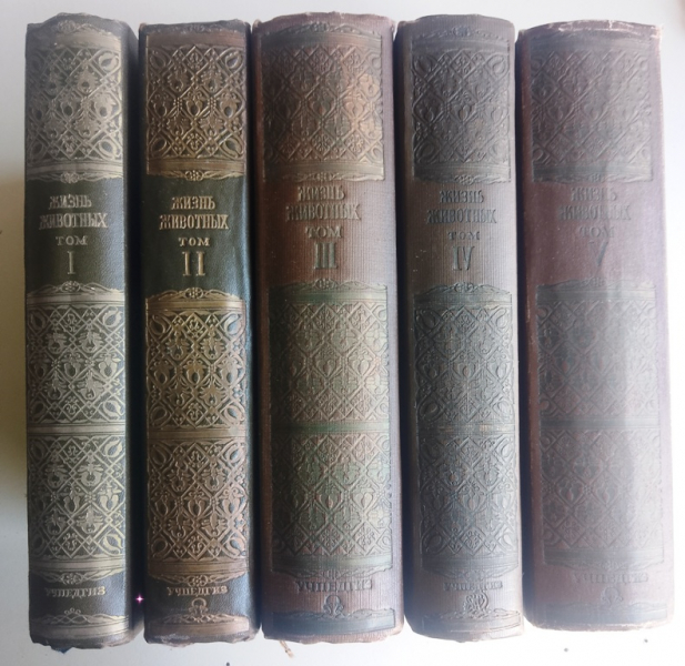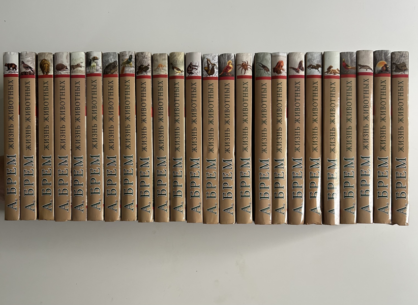 Популярный труд известного зоолога. Иллюстрированное издание. Альфред Эдмунд Брем (Брэм, 1829 – 1884) – немецкий ученый-зоолог и путешественник, автор знаменитой научно-популярной работы «Жизнь животных». А.Э. Брем родился во времена, когда на открытых путешественниками землях обнаружили невиданно интересный мир птиц, рыб и зверей. Обстоятельно, с научной достоверностью, простым языком он описал все существующие на земле живые организмы. С раннего возраста под руководством отца-орнитолога принимал участие в естественнонаучных и особенно зоологических наблюдениях и работах. Путешествия А.Э. Брэма начались в 17-летнем возрасте с путешествия по Африке в верховья Нила. После пятилетних странствований он вернулся в Германию и изучал в Йене и Вене естественные науки. Печатал орнитологические очерки в журналах и был одним из основателей Немецкого орнитологического общества. Второе путешествие привело его в Испанию, третье в Норвегию и Лапландию и в 1862 году четвертое — в северную Абиссинию. В 1863 году он принял приглашение стать директором Зоологического сада в Гамбурге, а в 1867 году переселился в Берлин, где в 1869 году основал знаменитый Берлинский аквариум. А.Э. Брем создал ряд превосходных научно-популярных работ, отличающихся основательностью содержания и живым, увлекательным изложением. Книги из собрания «Жизнь животных» содержат тонкие и живые наблюдения над миром животных, и современны до сих пор. Они не потеряли своей ценности не только как фундаментальный научный труд, но и как увлекательное и познавательное чтение для всех возрастов и поколений. Труд А.Э. Брема «Жизнь животных» уже более ста лет служит основой для школьных учебников, справочников. Здесь предлагается перевод с 3-го немецкого исправленного и дополненного издания, под редакцией магистра зоологии К.К. Сент-Илера. В каждом томе – подробное оглавление разделов и рисунков в начале издания, алфавитный указатель в конце издания на русском и латинском языках, а также множество политипажей и хромолитографий. Т. 1: Млекопитающие. Обезьяны. Полуобезьяны. Рукокрылые. Часть хищных. 1893. VIII, [4], XII, 724 с. : [19] л. частью цв. ил., портр., карт. Т. 2: Млекопитающие. Окончание хищных. Ластоногие. Насекомоядные. Грызуны. Неполнозубые. 1893. VIII, 730 с. : [19] л. частью цв. ил. Т. 3: Млекопитающие. Хоботные. Непарнокопытные. Парнокопытные. Сирены. Китообразные. Сумчатые. Птицезвери. 1893. VIII, 795 с. : [25] л. частью цв. ил., карт. Т. 4: Птицы. Воробьиные. Дятловые. Колибри. Стрижи. Мышанки. 1893. [2], II, VIII, 793 с. : [19] л. частью цв. ил. Т. 5: Птицы. Курукуйки. Пилоносы. Удодовые. Зимородки. Кукушковые. Совиные. Козодои. Сиворакши. Попугаи. Голубиные. Куриные. Водяные курочки. Журавлиные. 1894. X, 741 с. : [18] л. частью цв. ил. Т. 6: Птицы. Поисковые. Ластокрылые. Буревестниковые. Боевые. Шпорцекрылые. Нанду. Казуаровые. Страусовые. 1894. [2], VIII, 836, [1] с. : [23] л. частью цв. ил., карт. Т. 7: Пресмыкающиеся : Земноводные. 1895. [2], VIII, 834 с. : [17] л. час