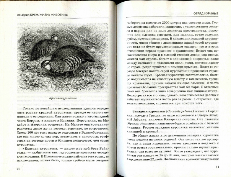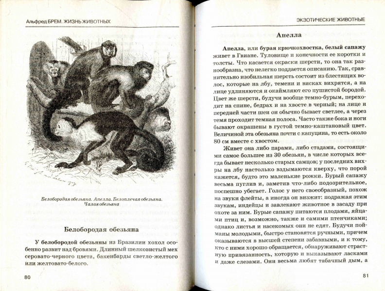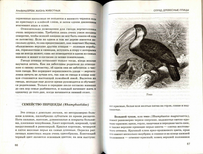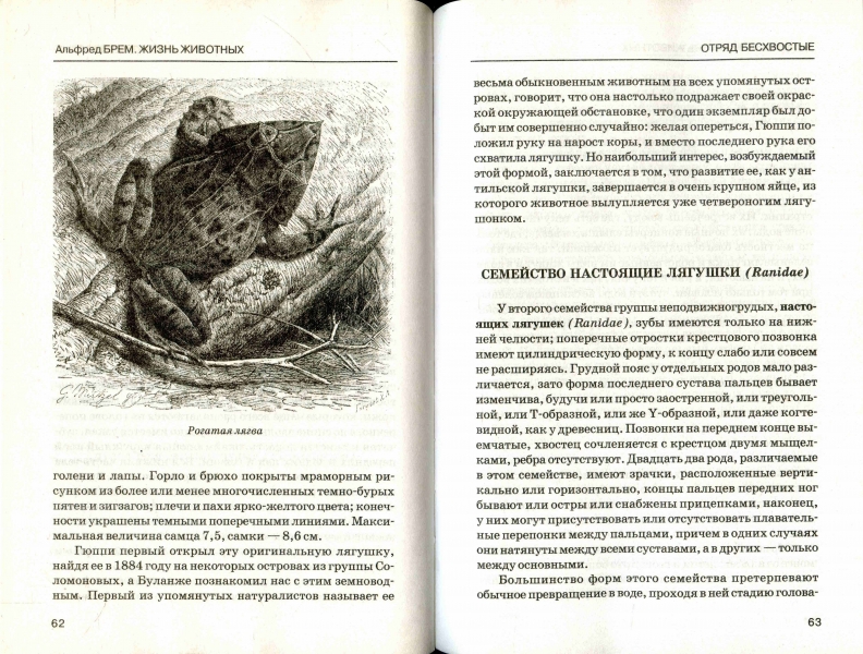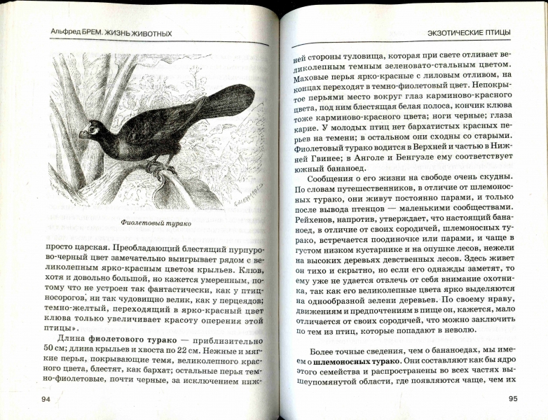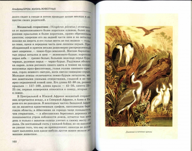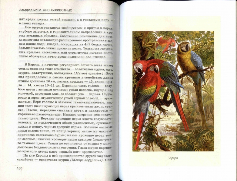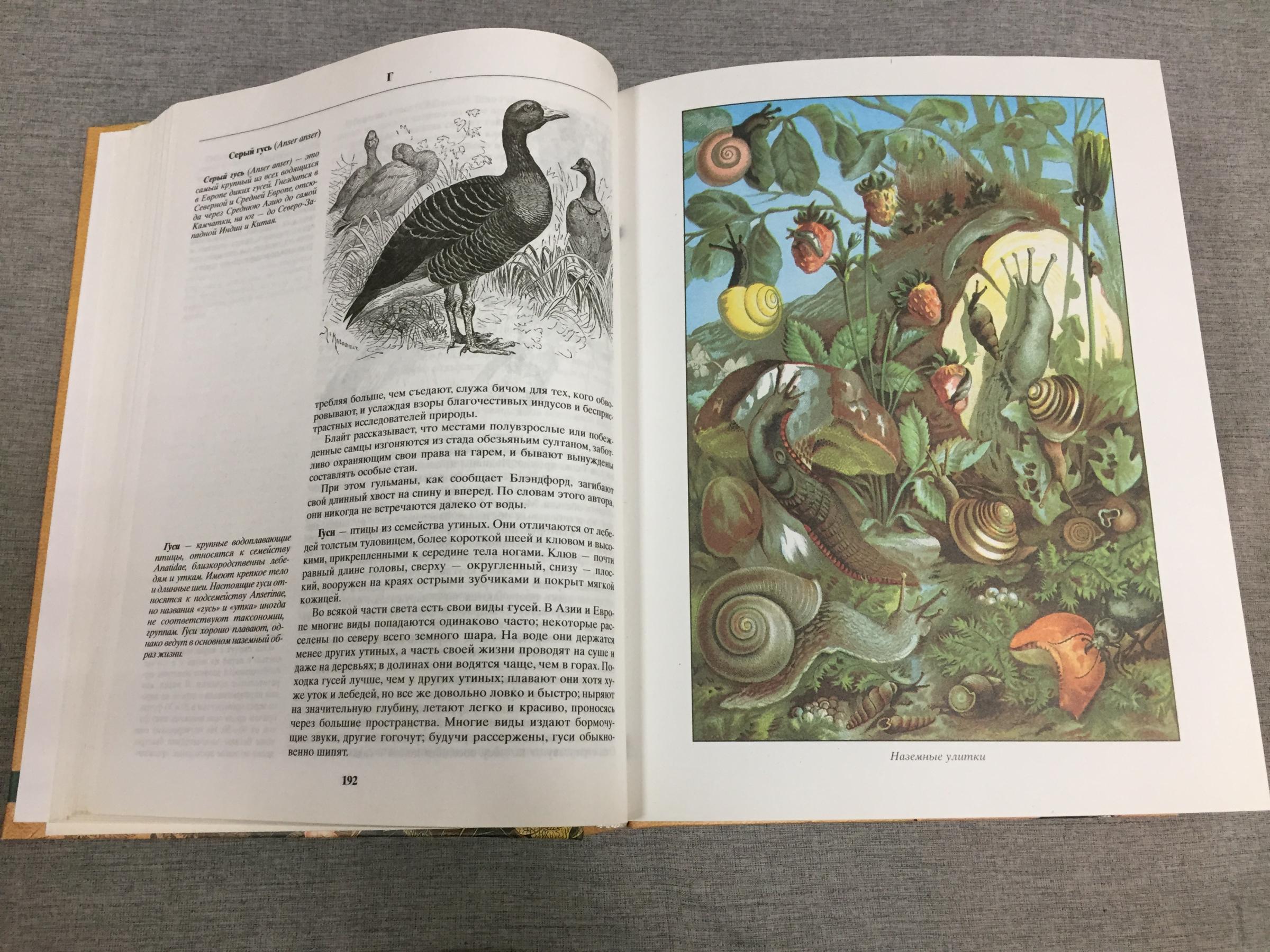 Популярный труд известного зоолога. Иллюстрированное издание. Альфред Эдмунд Брем (Брэм, 1829 – 1884) – немецкий ученый-зоолог и путешественник, автор знаменитой научно-популярной работы «Жизнь животных». А.Э. Брем родился во времена, когда на открытых путешественниками землях обнаружили невиданно интересный мир птиц, рыб и зверей. Обстоятельно, с научной достоверностью, простым языком он описал все существующие на земле живые организмы. С раннего возраста под руководством отца-орнитолога принимал участие в естественнонаучных и особенно зоологических наблюдениях и работах. Путешествия А.Э. Брэма начались в 17-летнем возрасте с путешествия по Африке в верховья Нила. После пятилетних странствований он вернулся в Германию и изучал в Йене и Вене естественные науки. Печатал орнитологические очерки в журналах и был одним из основателей Немецкого орнитологического общества. Второе путешествие привело его в Испанию, третье в Норвегию и Лапландию и в 1862 году четвертое — в северную Абиссинию. В 1863 году он принял приглашение стать директором Зоологического сада в Гамбурге, а в 1867 году переселился в Берлин, где в 1869 году основал знаменитый Берлинский аквариум. А.Э. Брем создал ряд превосходных научно-популярных работ, отличающихся основательностью содержания и живым, увлекательным изложением. Книги из собрания «Жизнь животных» содержат тонкие и живые наблюдения над миром животных, и современны до сих пор. Они не потеряли своей ценности не только как фундаментальный научный труд, но и как увлекательное и познавательное чтение для всех возрастов и поколений. Труд А.Э. Брема «Жизнь животных» уже более ста лет служит основой для школьных учебников, справочников. Здесь предлагается перевод с 3-го немецкого исправленного и дополненного издания, под редакцией магистра зоологии К.К. Сент-Илера. В каждом томе – подробное оглавление разделов и рисунков в начале издания, алфавитный указатель в конце издания на русском и латинском языках, а также множество политипажей и хромолитографий. Т. 1: Млекопитающие. Обезьяны. Полуобезьяны. Рукокрылые. Часть хищных. 1893. VIII, [4], XII, 724 с. : [19] л. частью цв. ил., портр., карт. Т. 2: Млекопитающие. Окончание хищных. Ластоногие. Насекомоядные. Грызуны. Неполнозубые. 1893. VIII, 730 с. : [19] л. частью цв. ил. Т. 3: Млекопитающие. Хоботные. Непарнокопытные. Парнокопытные. Сирены. Китообразные. Сумчатые. Птицезвери. 1893. VIII, 795 с. : [25] л. частью цв. ил., карт. Т. 4: Птицы. Воробьиные. Дятловые. Колибри. Стрижи. Мышанки. 1893. [2], II, VIII, 793 с. : [19] л. частью цв. ил. Т. 5: Птицы. Курукуйки. Пилоносы. Удодовые. Зимородки. Кукушковые. Совиные. Козодои. Сиворакши. Попугаи. Голубиные. Куриные. Водяные курочки. Журавлиные. 1894. X, 741 с. : [18] л. частью цв. ил. Т. 6: Птицы. Поисковые. Ластокрылые. Буревестниковые. Боевые. Шпорцекрылые. Нанду. Казуаровые. Страусовые. 1894. [2], VIII, 836, [1] с. : [23] л. частью цв. ил., карт. Т. 7: Пресмыкающиеся : Земноводные. 1895. [2], VIII, 834 с. : [17] л. час