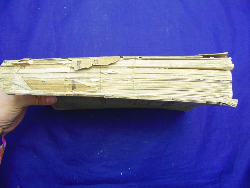 | 147 | BS-OksAntique Санкт-Петербург. Петербург. Тип. Куколь-Яснопольского. 1866г. [4], XXXI, [3], II, 722 с., илл., [14] л. вкл. Полукожаный, с бинтами и тиснением, переплет, энциклопедический (26,4х17,7 см) формат. Состояние: том сильно запылен. Корешок с небольшими потертостями. Сторонки переплета сильно потерты по кромкам. Некоторые вклейки полностью или частично отделены от блока, с частично подклеенными надрывами. Многие иллюстрации с малозаметными следами обводки. Страницы с небольшими загрязнениями, фоксингами, следами попадания влаги. Встречаются небольшие подклеенные надрывы, замятости. Стр. 721-722 ошибочно пронумерованы 681-682. Фото - по запросу. Вес 1550 г. |