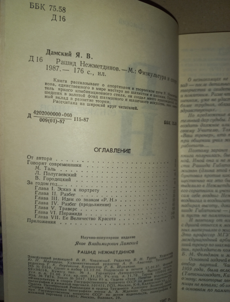 200 г. Книга рассказывает о спортивном и творческом пути Р. Нежметдинова, единственного в мире мастера по шахматам и шашкам. Представитель яркого комбинационного стиля, он создал много произведений, вошедших в золотой фонд шахматного и шашечного искусства, внес заметный вклад в развитие теории. Тираж 100 000. Заказ № 3447.