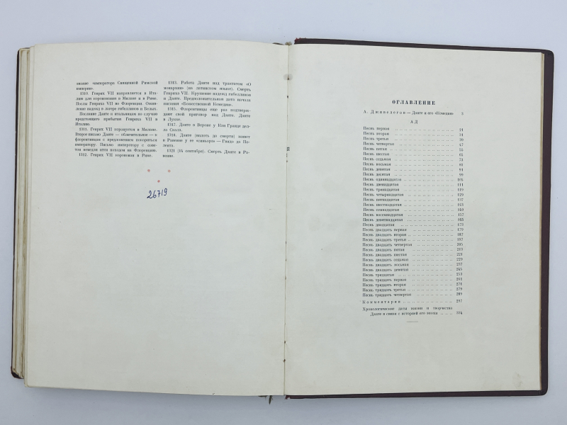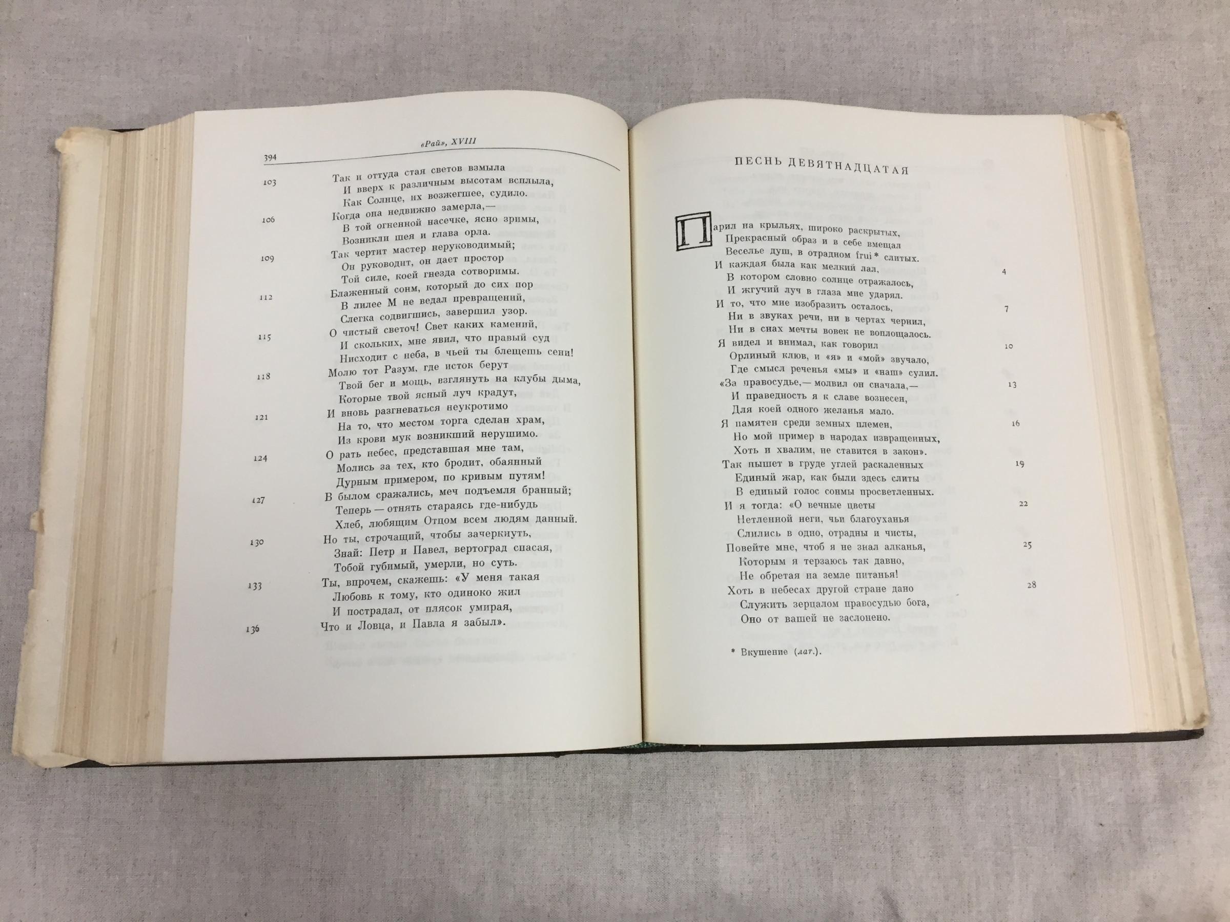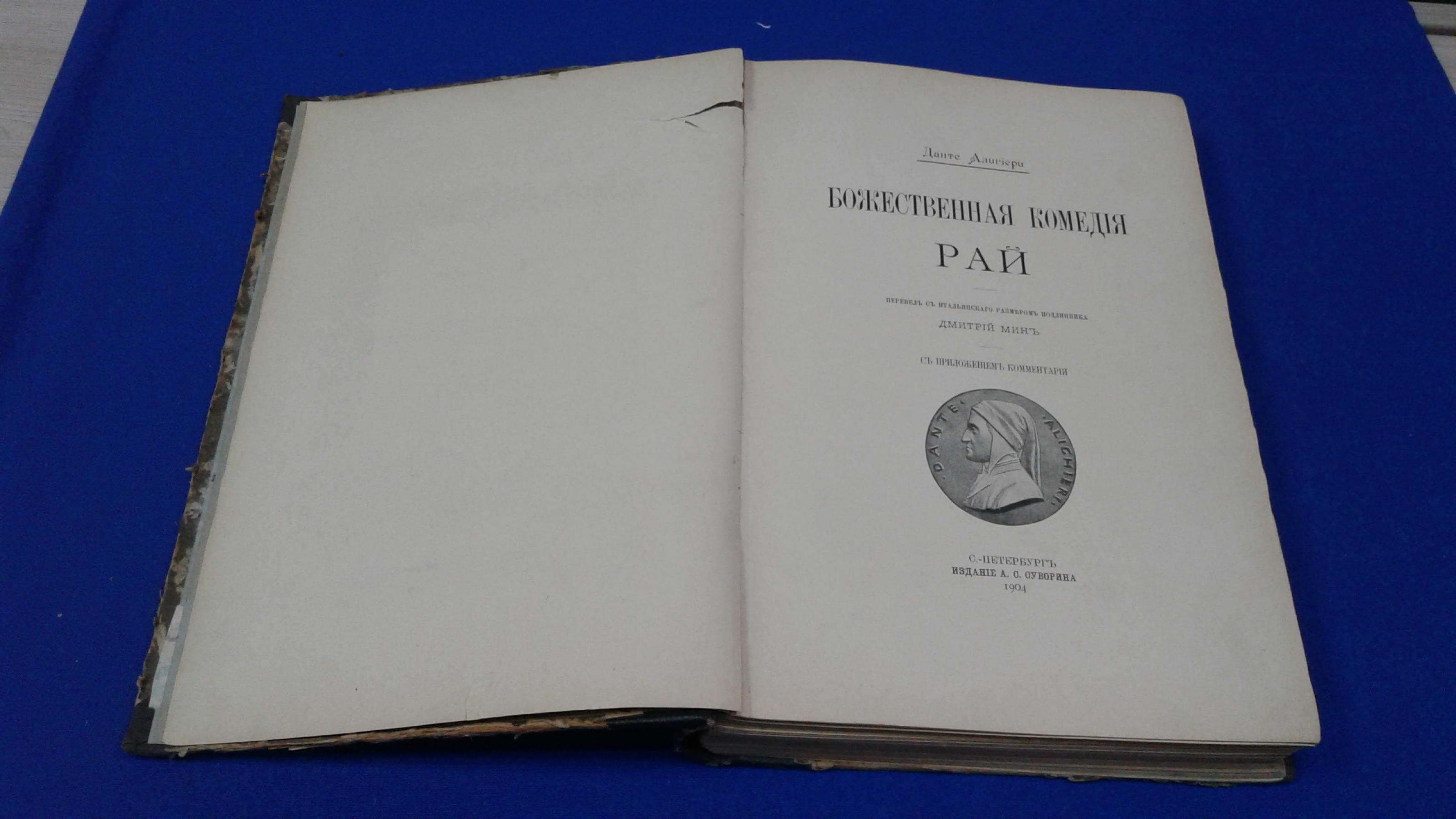 | 216 | BS-Knigant.ru Москва. СПб.: Издание А.С. Суворина, 1902. Ад. XXXVI, 356, 1 л. фронт. (портр.), 2 л. табл. Чистилище. [4], 462 с. Рай. 2-е изд. 1909. [4], 436 с., 8 л. ил. 1902г. Все книги в полукожаных современных переплетах, выполненных в тиле переплетов эпохи. Торшонированный обрез. Ляссе. Иллюстрированная издательская обложка сохранена к части Рай., 27,8х19 см. Состояние: отличное Фото – Фото – Фото – Фото – Фото – Фото – Фото – Фото – Фото |