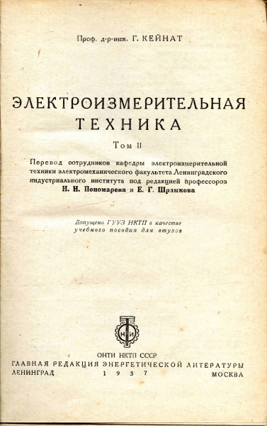 Второй том труда профессора Георга Кейната посвящен методам электрических измерений различных величин как электрических, так и неэлектрических. Тираж 5000 экз. Вес без упаковки 470 г.