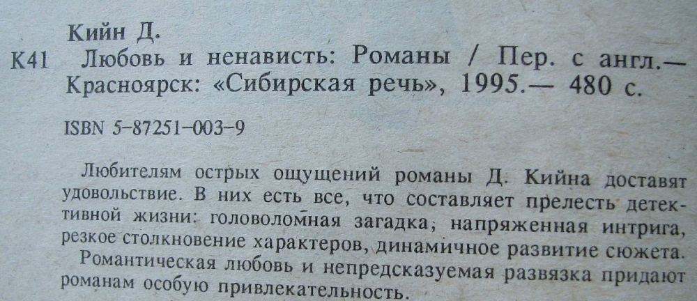 | 11 | BS-Orlik Петрозаводск. М 1992г. 232с тверд переплет, слегка увеличенный формат. Состояние: ближе к удовл. |