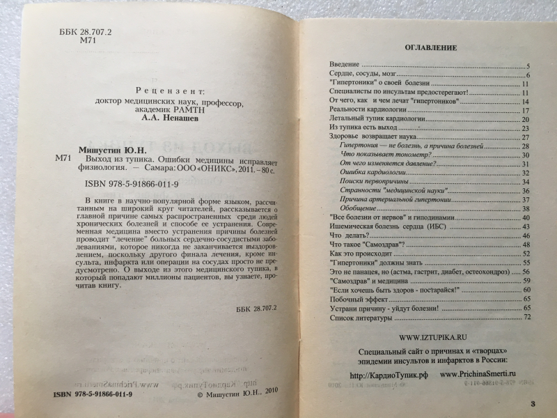 Мишустин Ю.Н. Выход из тупика. Ошибки медицины исправляет физиология.