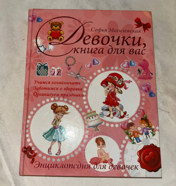 Советская энциклопедия для девочек в литературной форме. С многочисленными черно-белыми и цветными рисунками Бориса Павловича Кыштымова. В обширном и разнообразном творчестве Софьи Абрамовны Могилевской энциклопедия домашнего хозяйства `Девочки, книга для вас!` стоит несколько особняком, но и не в одиночестве. Компанию ей составляли в разные годы то небольшая книжка `Маленькая хозяюшка` (1963), то полезные советы для детей, публиковавшиеся в журнале `Колобок` за 1974-1975 гг., то радиопередачи `Давай поможем дому`, которые шли по Всесоюзному радио в течение нескольких лет. Так что `книга для девочек` - отнюдь не случайный эпизод в творчестве Софьи Могилевской. И хотя в своих воспоминаниях автор отнесся к ней несколько иронично, время показало, что именно эта `девчоночья` энциклопедия стала одним из самых востребованных произведений писательницы. Стоит сказать, что в книге нет ни слова о сексуальном воспитании, а книжка написана для девочек среднего возраста, но это особенности `пуританской` советской действительности. В СССР секса не было.