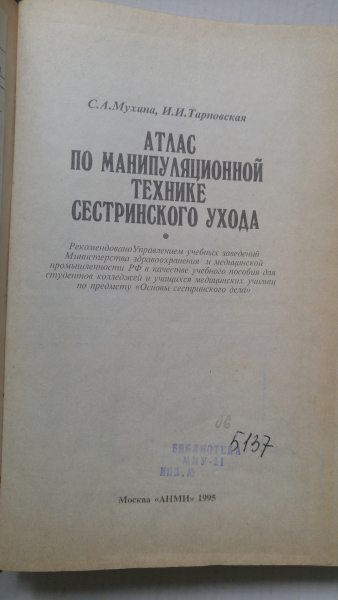 Мухина С.А., Тарновская И.И. Атлас по манипуляционной технике сестринского ухода.