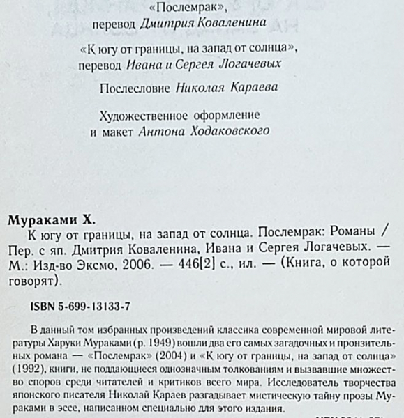 Мураками Харуки. К югу от границы, на запад от солнца