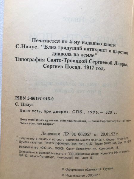 Нилус Сергей. Близ есть, при дверех. О том, чему не желают верить и что так близко