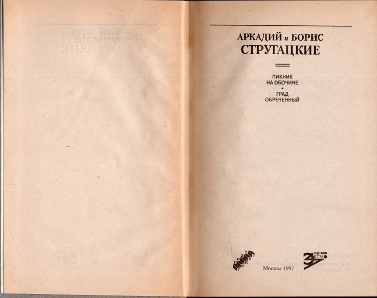 | 22 | BS-buchpostamt2019 Москва. М. Текст - Эксмо 1997г. 496 с. Твердый иллюстрированный издательский переплет, 13*20,5 см. Состояние: хорошее - очень хорошее Обложка – Титульный разворот – Содержание – Пример разворота 1 – 2 – 3 – 4 – 5 – 6 – Пикник на обочине. Обложка англоязычного издания – Структура города из рабочего дневника Аркадия и Бориса Стругацких от 26 июня 1969 года. Подписи гласят - сверху «пропасть», снизу «обрыв наверх (склон крутой горы)». Слева указаны «пустыня», «современный город» и «развалины старых городов», в центре «начало», а справа — «совр[еменный] город № 2» |
