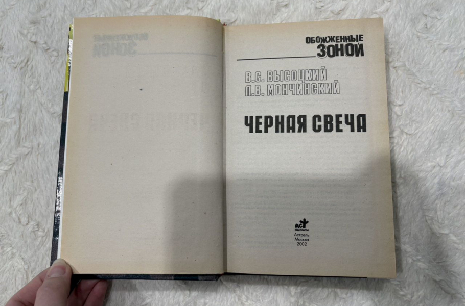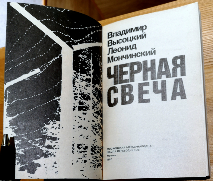 Первое издание романа `Черная свеча`, написанного в соавторстве Владимиром Семеновичем Высоцким (1938-1980) и его другом, иркутским писателем и журналистом Леонидом Васильевичем Мончинским (1935 – 2016). В выходных данных указано, что книга издана для подписчиков иркуткой зазеты `Советская молодежь`. В романе описываются быт, взаимоотношения, тонкости пребывания и существования заключенных в местах лишения свободы. В 1976 Владимир Высоцкий совершал поездку по Иркутской области. Вместе с известным создателем старательских артелей Вадимом Тумановым и писателем Леонидом Мончинским посетили Бодайбо – центр золотодобычи Сибири. Во время посещения артели `Лена` Высоцкий познакомился с золотодобытчиками, многие из которых были бывшими заключенными. Еще до поездки Высоцкий планировал создать сценарий фильма о лагерной жизни, и сняться в главной роли, но Мончинский убедил Высоцкого сначала написать книгу. Первая часть книги `Побег` была написана при жизни Высоцкого, вторая - `Стреляйте, гражданин начальник!` - была закончена Л. Мончинским в 1984 году. Во время печатания первого варианта романа, машинистка получила сильное нервное потрясение и не смогла продолжить работу над книгой. Впервые роман был опубликован в 1992. В центре повествования – лагерная жизнь обитателей ГУЛАГа, в частности непростая судьба бывшего моряка, выдающегося боксера Вадима Сергеевича Упорова, осужденного за участие в несанкционированном поединке с американским спортсменом. В романе описывается тяжелая лагерная действительность, борьба за выживание в условиях постоянного голода, изматывающей работы, сурового режима и интриг соперничающих воровских группировок. После выхода книги литературные критики и криминальные авторитеты, привлеченные в качестве экспертов, отметили достоверность происходящего, объективность характеристик персонажей. Вместо предисловия опубликована статья Л. Мончинского `О том, как писалась эта книга`. В конце книги опубликован Словарь жаргонных слов и выражений, использованных в романе. Книга проиллюстрирована фотографиями, сделанными Л. Мончинским в 1976 году во время поездок в В. Высоцким по Иркутской области. Кстати, именно во время этой поездки В. Высоцкий дал импровизированный концерт с балкона квартиры Л. Мончинского в Иркутске.