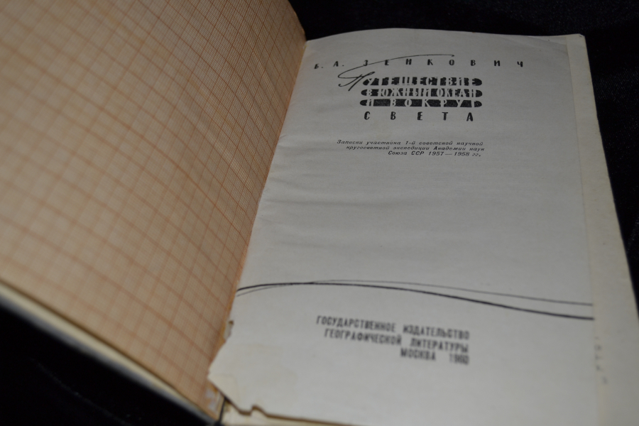 `Это увлекательная повесть о путешествии в Антарктиду и вокруг света, которое совершил в составе Первой советской научной экспедиции Академии наук Союза Сср на судне ``Обь`` автор--известный советский ученый-билог. Он рассказывает о Мировом океане и суровой природе Антарктики, об интересных эпизодах и встречах в пути, о посещенных им городах различных стран, о мужестве и героизме людей, смело вступивших в борьбу с морозами и буранами ледяного материка и всегда отовых помочь попавшим в беду людям.` Тираж 35 000 экз., что по советским меркам довольно мало.